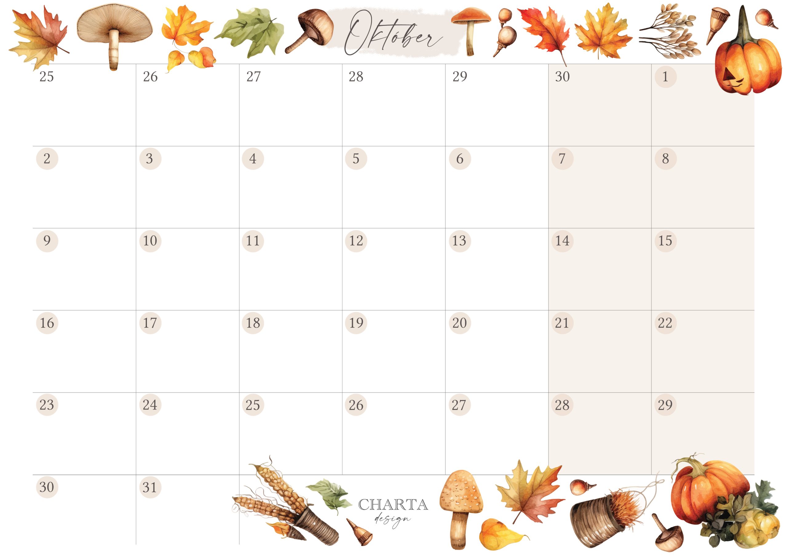 Vytlačte si mesačný plánovač na október a zapíšte všetko, čo vás čaká (obrázok si otvorte a priblížte pre vyššie rozlíšenie).
