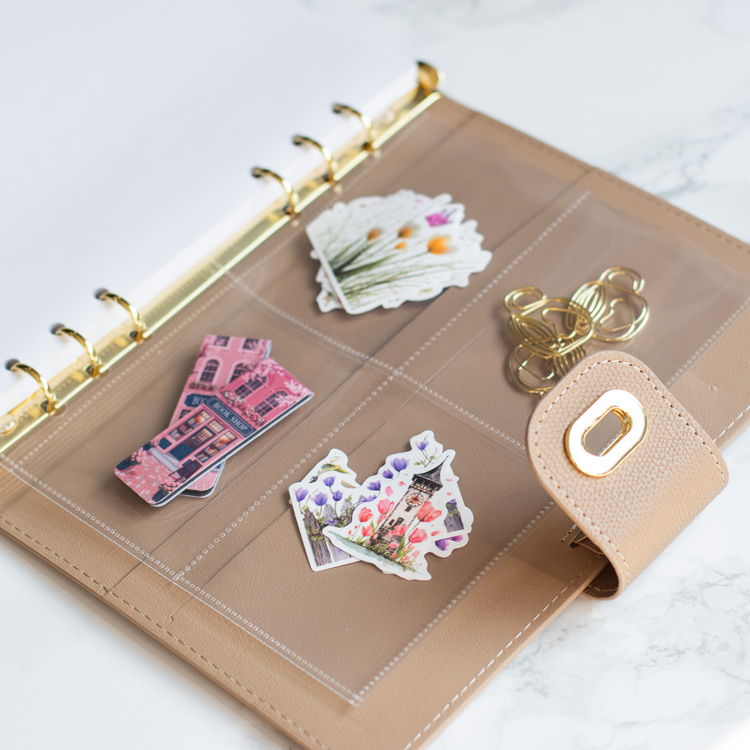 Plastová vložka do karisbloku vo veľkosti A5 (cca 12,5 x 20,5 cm) vhodná pre karisbloky so 6-krúžkovou mechanikou.